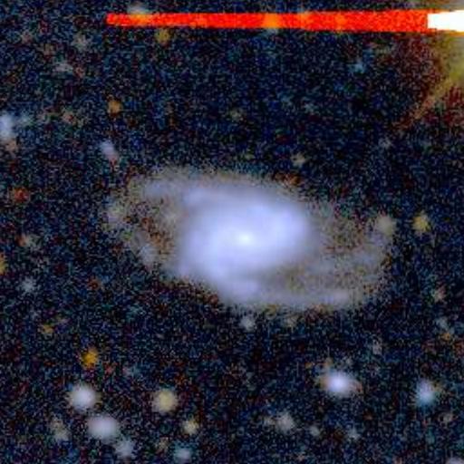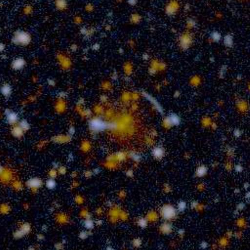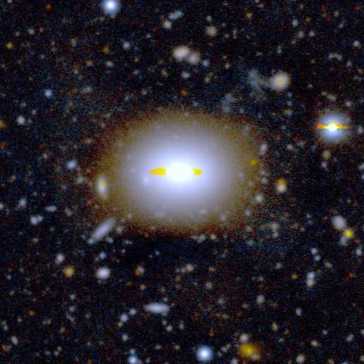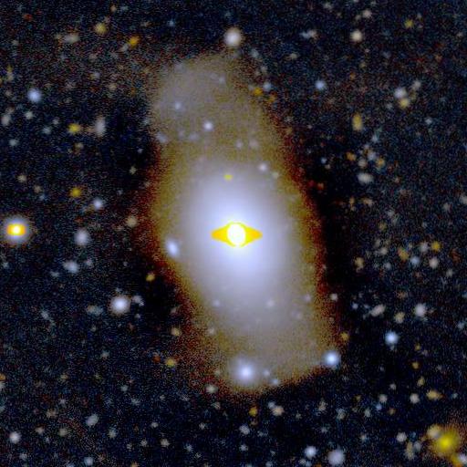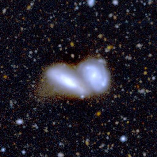 An asymmetric galaxy, probably in the late stages of swallowing a smaller galaxy.
