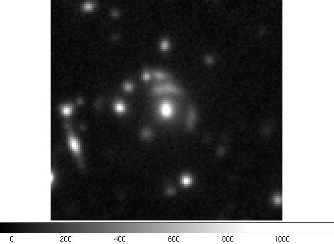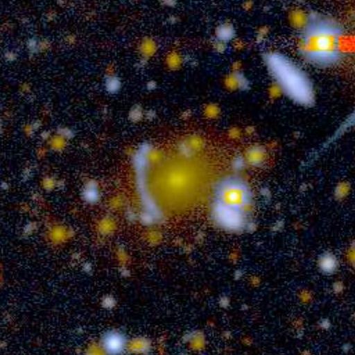 Another strong gravitational lens (zooming in to the center of the cluster at the top of this page).