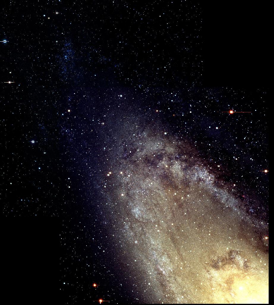 Two of our 10 M31 fields mosaiced together; color based upon our